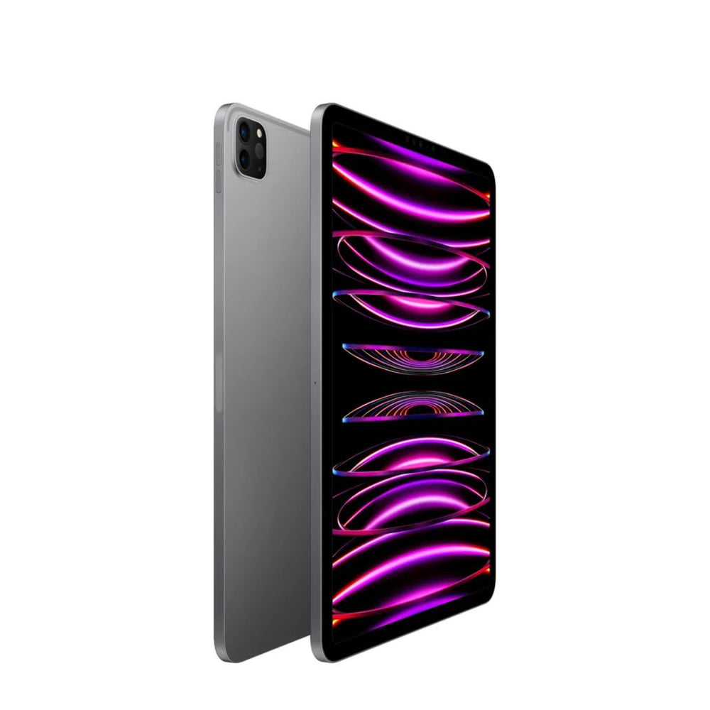 El Apple iPad Pro 11" 4 Gen combina un diseño elegante en color gris espacial con bordes metálicos delgados y pantalla amplia, ideal para productividad, entretenimiento y diseño creativo.